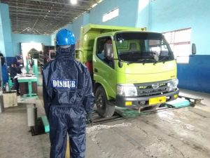REMBANG, Dinas Perhubungan Kabupaten Rembang dalam rangka pencegahan Covid -19 di pelayanan uji kendaraan, dalam hal ini setiap kendaraan yang akan diuji dilakukan penyemprotan cairan disinfektan untuk mencegah penyebaran virus korona. Hal ini disambut baik oleh para sopir kendaraan yang sedang melaksanakan uji KIR. Setiap penguji dilengkapi dengan Alat Perlindungan Diri / APD sebagai kelengkapan pencegahan dan perlindungan diri.